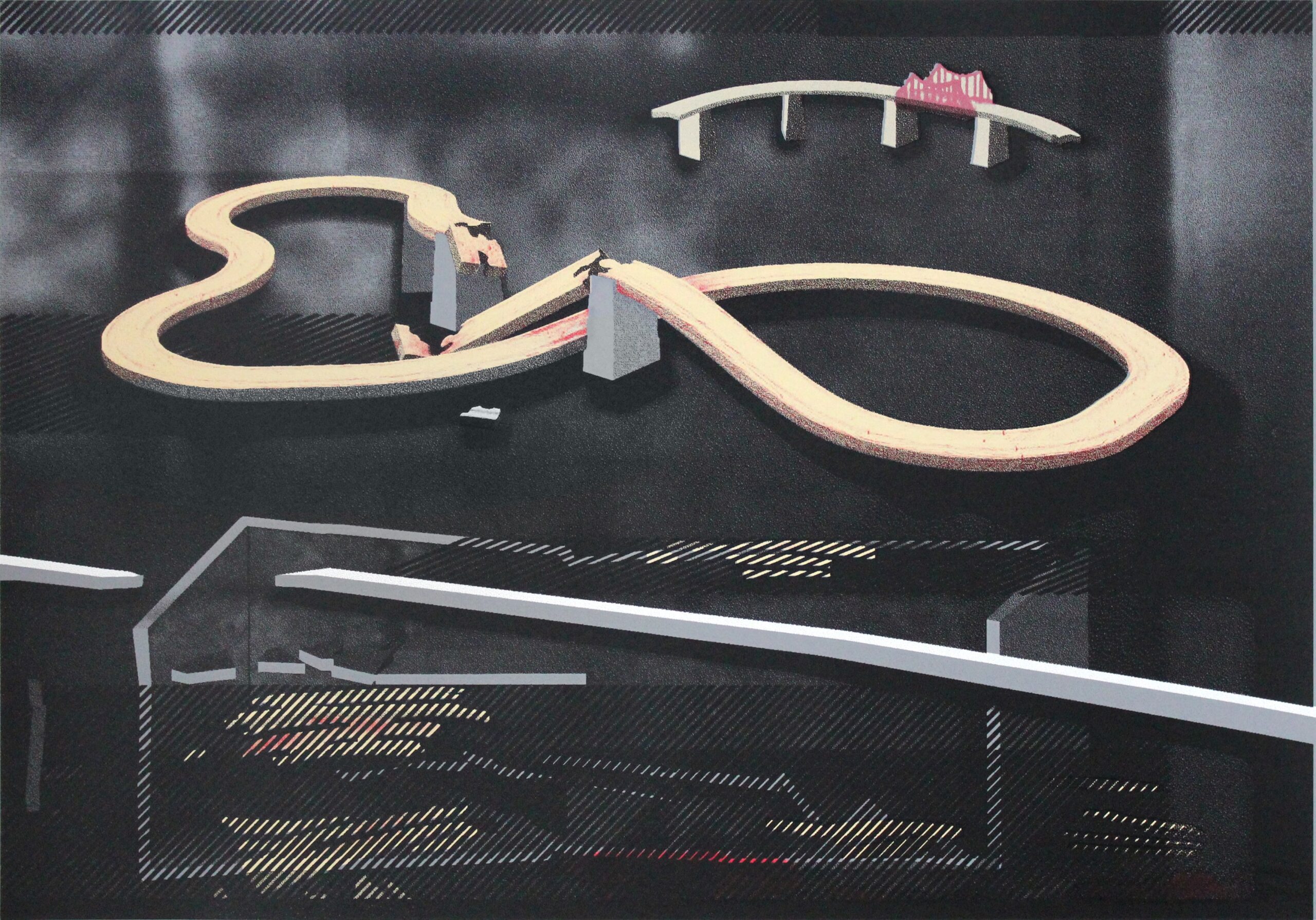 Cykl prac graficznych oraz instalacji wykonanych w technice serigrafii oraz druku wklęsłego. Powstałe graficzne przedstawienia komentują w symboliczny sposób za- grożenia otaczające współczesnego człowieka a także te które sam sobie wzajemnie stwarza.