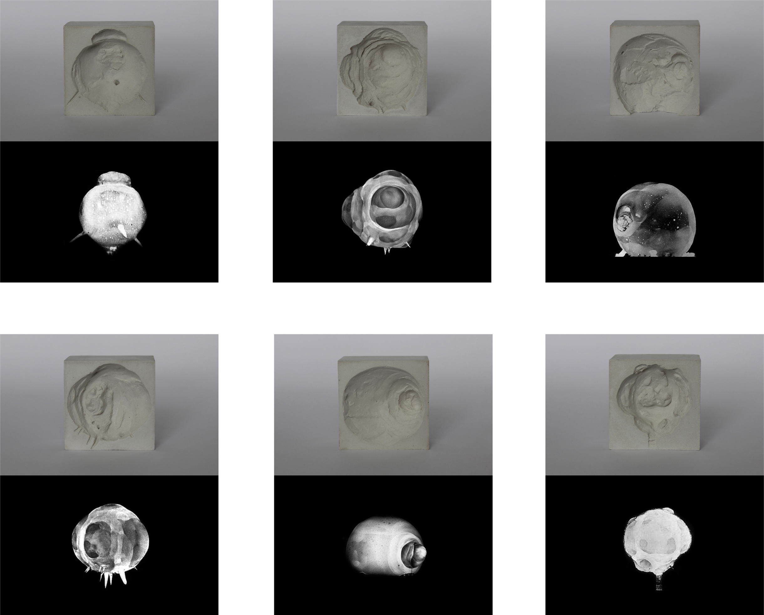 Metamorfozy, odlew w gipsie, wydruk na papierze, 2013